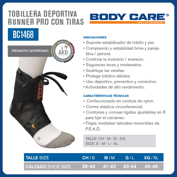 La tobillera Runner Pro Body Care es el accesorio perfecto para los amantes del running y deportes al aire libre. Su diseño ajustable con cordones y correas permite adaptarla a cualquier tamaño de tobillo, brindando un ajuste seguro y cómodo durante toda la actividad física.
